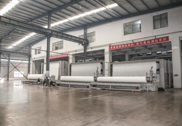 目前,一、二期项目已于去年建成投产。本次考察的是第三期项目,本项目于2018年6月18日开工建设,新建厂房2.6万平方米,现已全部完成土建和设备安装工作,项目达产后将形成年产2.6亿平方米的生产规模。该项目设备采用世界一流的无纺布生产线,与传统设备相比,节能10%,效率提升20%,产品质量达国际先进水平。