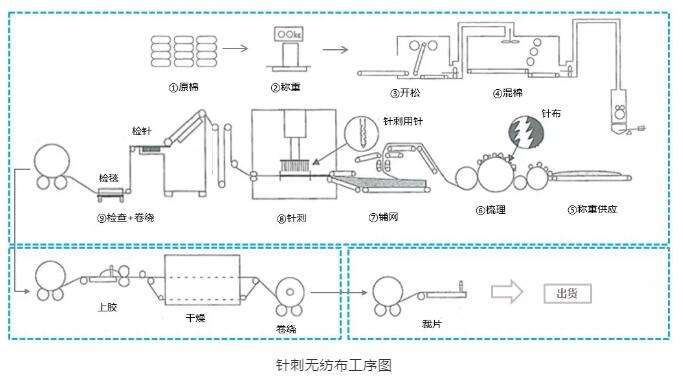 针刺无纺布的生产流程介绍,附带工艺流程示意图